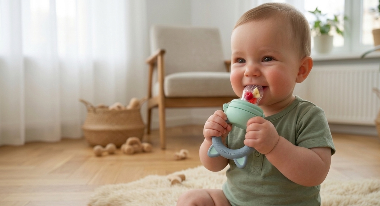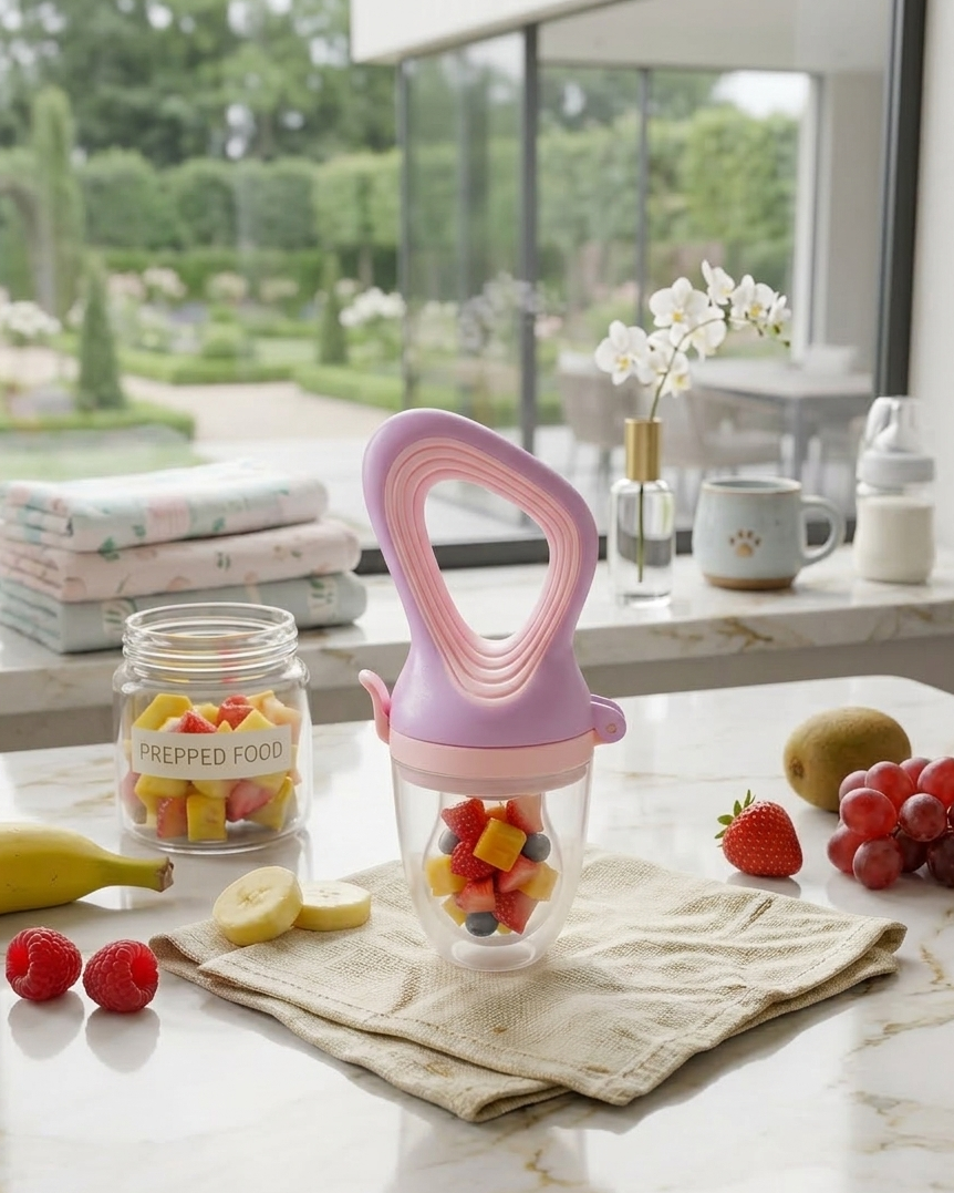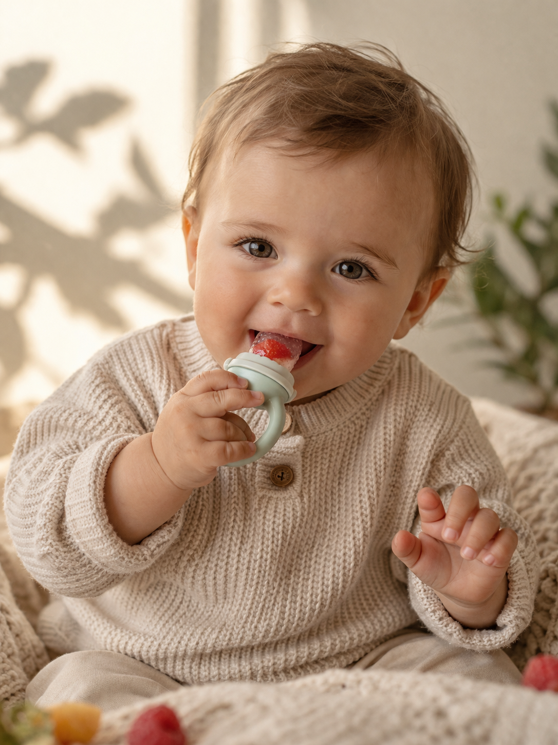 La tétine grignoteuse en silicone qui apaise les gencives tout en faisant découvrir les aliments à votre bébé — sans risque d’étouffement.